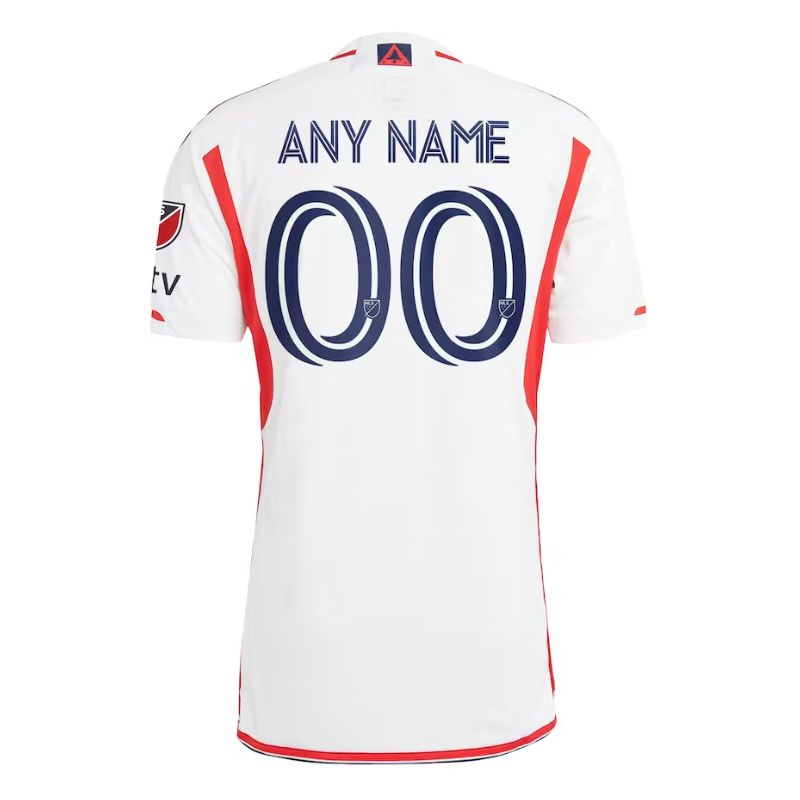 Introducing the New England Revolution 2023 Customized Jersey in a pristine shade of white—a blank canvas for you, the dedicated fan, to personalize and celebrate your unwavering allegiance. This jersey is more than just apparel; it’s a representation of your passion and a testament to your unique connection to the team.